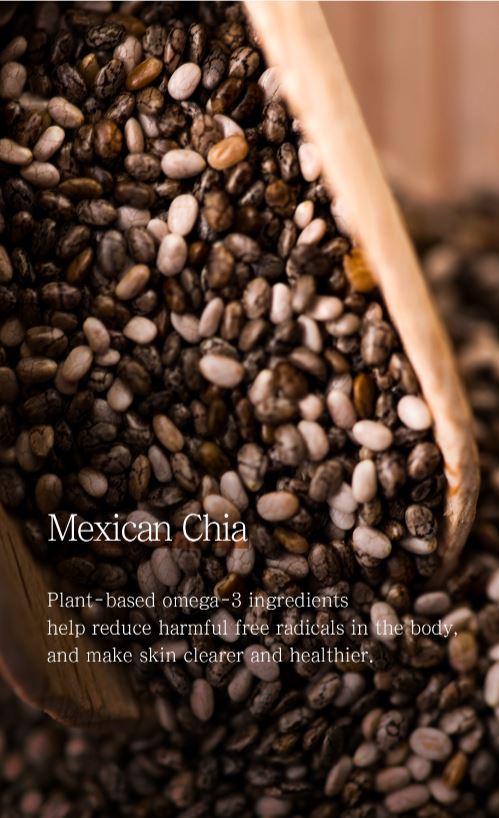 Vatten, glycerin, sorbitol, natriumpolyakrylat, ricinolja (Ricinus Communis), trietylhexanoin, cellulosagummi, hydrolyserat extensin (1000 ppm), guld (0,1 ppm), allantoin, adenosin, extrakt av Origanum Vulgare-blad, extrakt av Chamaecyparis Obtusa-blad, extrakt av Salix Alba (pilbark), extrakt av Lactobacillus/sojabönsferment, extrakt av Portulaca Oleracea, extrakt av Cinnamomum Cassia-bark, extrakt av Scutellaria Baicalensis-rot, acetylhexapeptid-8, maltodextrin, polyakrylsyra, vinsyra, aluminiumglycinat, dinatrium EDTA, isopropylalkohol, butylenglykol, 1,2-hexandiol, kaprylylglykol, kalciumtitanborsilikat, CI 77499, CI 77891, CI 77491, Tennoxid, Fenoxietanol, Natriumbensoat, Doftämne.