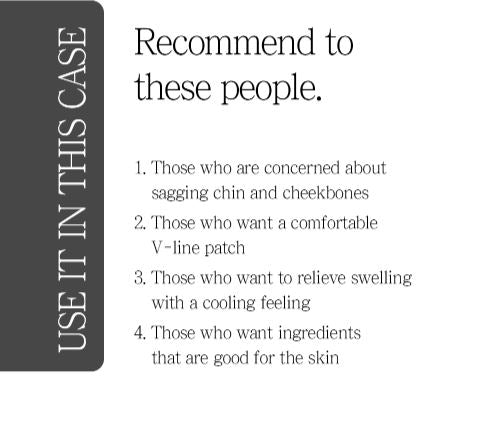 1. Ta ut plåstret och ta sedan bort den genomskinliga filmen. 2. Placera mitten av den sida som filmen har tagits bort mot hakan. 3. Tryck jämnt från mitten till båda ändar, dra långsamt och häng det på öronen. 4. Ta bort plåstret efter att det har suttit fast i cirka 20 minuter.