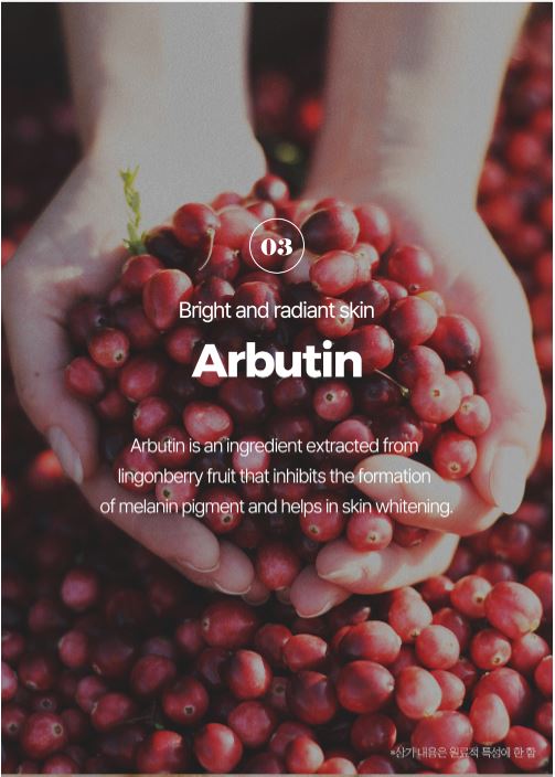 Arbutin: Hjälper till att reducera mörka fläckar och ojämn pigmentering.
